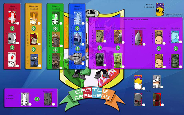 城堡破坏者(Castle Crashers)是一款由The Behemoth制作并发行的横版动作冒险类游戏,游戏虽然不大,但打击感一点也不逊色。游戏场景是在一个城堡里,相传国王的宝石被夜之男巫抢走了以及国王的四个女儿(公主)也被野蛮人抓走了,后又被小偷带走,所以玩家的任务就是来到城堡解救所有的公主,并且打败夜之男巫。游戏的画面偏Q版卡通,但角色的动作和表情确是逼真而风趣,同时地图场景以及物品和人物的绘制也是挺可爱的,为这次惊险的任务添加了一些乐趣和放松。游戏内容很丰富,不仅有多种模式选择,比如故事剧情模式、远离蛮族、竞技场模式等,还有60多个关卡,玩家需要挑战关卡获得更高的评价。除了以上这些模式关卡,角色人物也是非常的多,还有很多隐藏角色。每个角色都有不同的技能和连招,这比较考验玩家的操作和手速,所以,装备是必不可少的,合适和更强大的装备对玩家挑战关卡有很大的帮助,还有一些道具,也能给玩家带来很大的帮助。