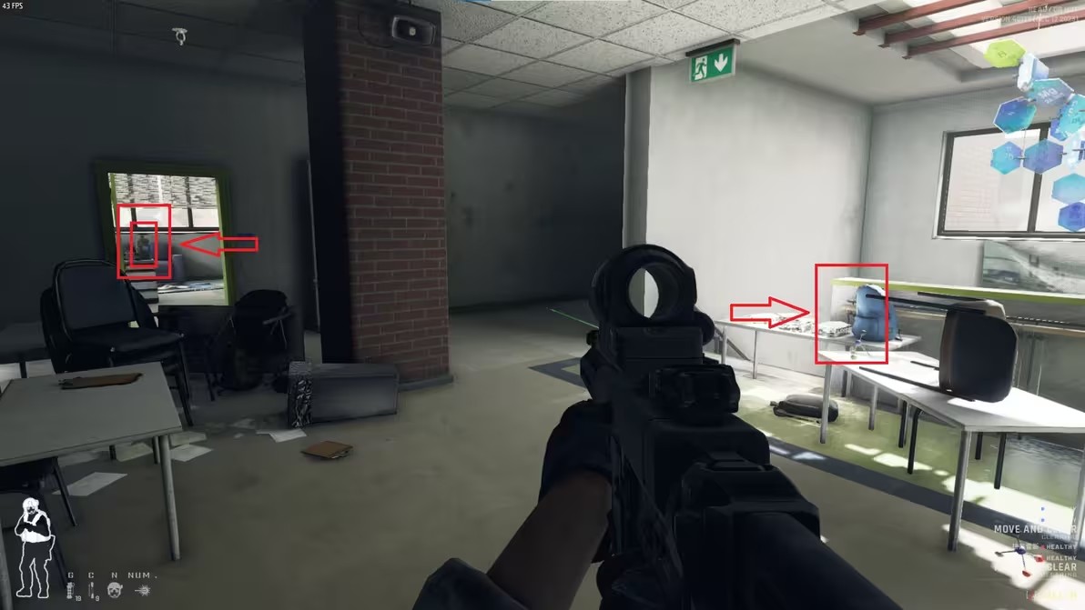 6、门有最基本的3种开门方式,靠近门把手是peek door,你会经常用到它,可以使用战术投掷物,检查陷阱等,视角往中间一点是open door,视角在门的下半部分是踹门(你们的最爱),注意,上锁的门一下踹不开,但是可以把门踹解锁,后续可以继续踹开门或者正常开门。当门后有歹徒且门是锁上的情况下踹门,这种举动和自杀没区别。