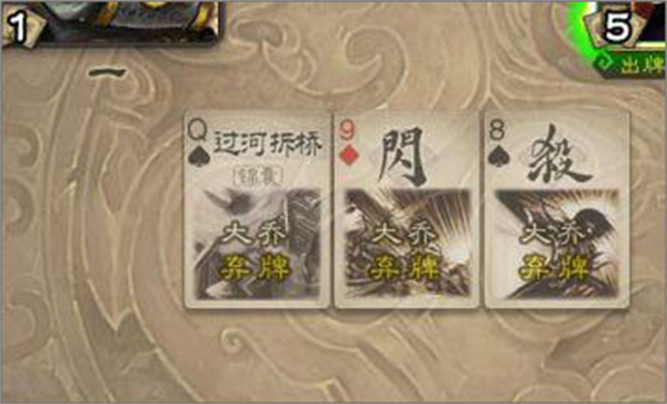 1、通过回合制出牌顺序,在游戏中依次行动,每位玩家的回合有判定、摸牌、出牌和弃牌等过程。