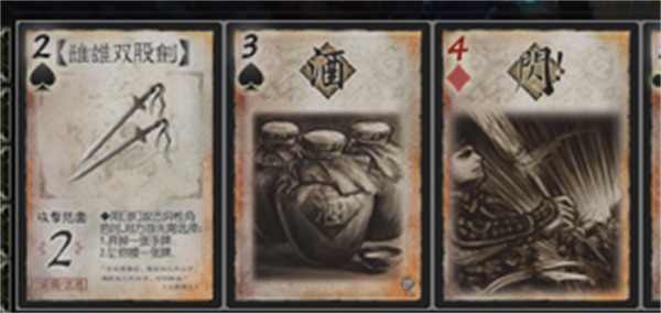 3、基本牌:就是可以使用杀和闪的牌。杀就是向一个武将,发起进攻,如果对方没有闪的话,就可以扣掉对方一个生命值。还有桃,可以回复一滴生命值。