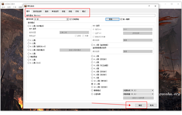 3、在进入游戏前,玩家可以根据需要进行相关的设置,比如设置游戏人数以及技能武将等。