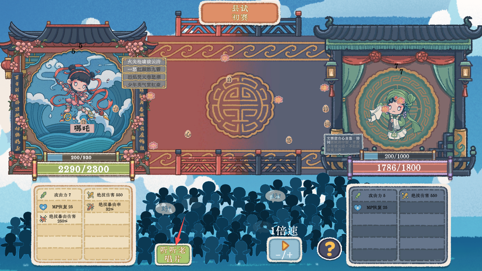 9、战斗过程中,玩家还可以点击屏幕下方的 “听听老唱片”,可以收听到“斩马谡”,“斩黄袍”,“卖马耍锏”等经典戏曲。
