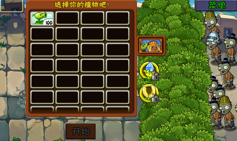 不使用坚果和高坚果,完成迷你游戏中的【植物僵尸】关卡