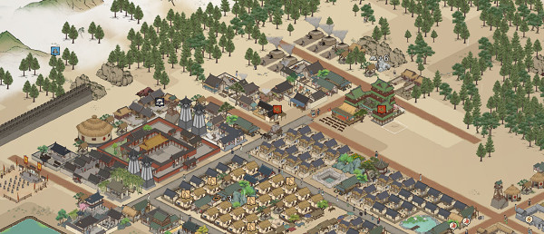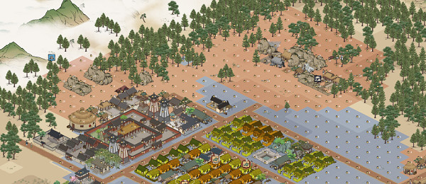 游戏开局引导造住房、农田菜地等基础的发展,游戏中会随机出现祥瑞、仙鹤、灵龟等可以加成的状态,还会有民间断案、官场选择决策的,在时间节点剧情上以圣上下方的圣旨要求为任务,还有老百姓的讨论信息等作为剧情的和背景的补充。