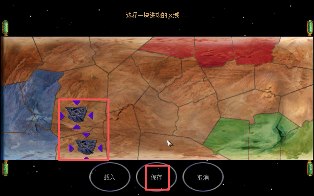 5、游戏开始前可以选择点击屏幕下方的“保存”,以防万一,随后在地图上就可以选择攻略区域了。