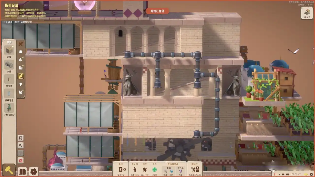 (3)有些时候资源条会显示为红色,这种状态的资源正在被搬运工搬运,不能被管道运输(毕竟管道连接的是塔身不是小人的背后)。