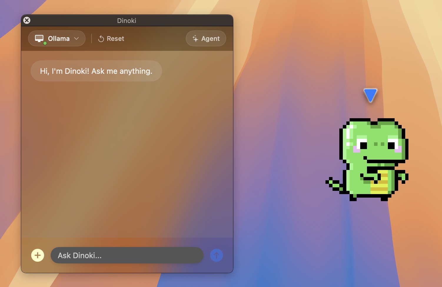 在Mac上使用 Dinoki,最直观的感受是其像素风格的UI设计令人眼前一亮。助手角色以小宠物形式栖息于屏幕一角,唤醒快捷、响应迅速,无论是查天气、设置提醒还是写一段文案,Dinoki 都以对话框形式灵活响应。它支持通过菜单栏或快捷键(如 ⌘+⇧+D)快速调出,操作逻辑贴合macOS生态,无需学习成本。语气友好、界面生动,配合高效的语义理解能力,使其不仅是工具,更是日常使用中的“数字伙伴”。