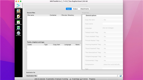 MKVToolNix Mac版一款mac系统专业的MKV无损处理编辑工具。有了它大家不但能够帮助很好把多种视频、音频、字幕等封装成mkv格式。能够在macOS 、Linux和其他Unices和Windows下工作,甚至是还可以提取mkv视频内挂的音频、字幕等文件,无损处理编辑,功能非常强大。而且软件还提供着mkvmerge、mkvinfo、mkvextract、mkvpropedit,mmg等众多实用的功能,以及拥有众多的先进特性,支持跨平台使用,自带图形界面程序,让用户在编辑和制作的同时更加轻松、方便、直观哦。