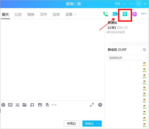 1、打开腾讯QQ Mac版,登录进入学校QQ群,然后在聊天窗口就可以看到群课堂。