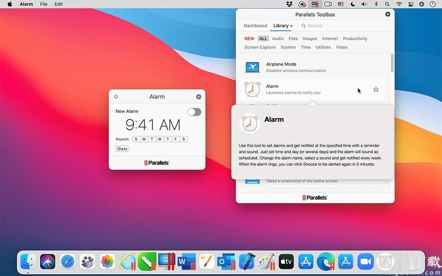 Parallels Toolbox 是 一款一体化解决方案,专为创意人士、学生、小型企业主、长期多任务处理者、IT 经理以及介于其间的所有人而设计。只需单击一下,即可:节省硬盘上的空间、创建高质量内容、快速优化计算机的演示环境等。尽享 40 多款功能强大的生产力应用,让您梦寐以求的工具触手可及,所有这些通过一个应用即可实现。