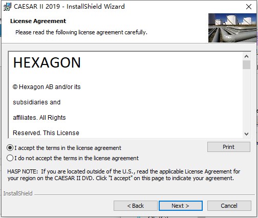 3、勾选“I accept the terms in the license agreement”