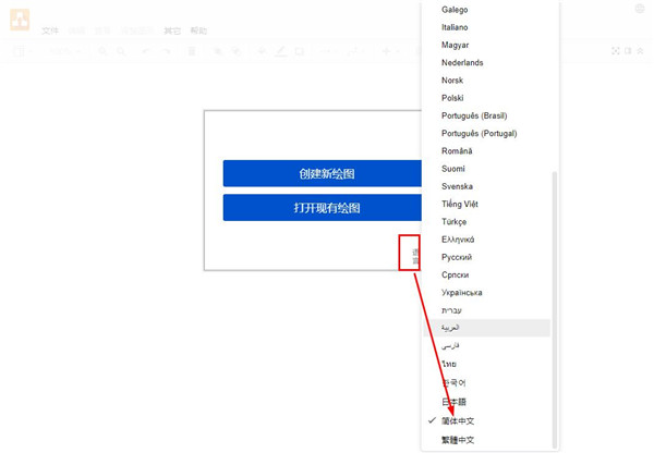 1、首先打开draw.io desktop,发现默认是英文语言,这时点击Language选择简体中文,再关闭软件后重新打开就是中文界面了;