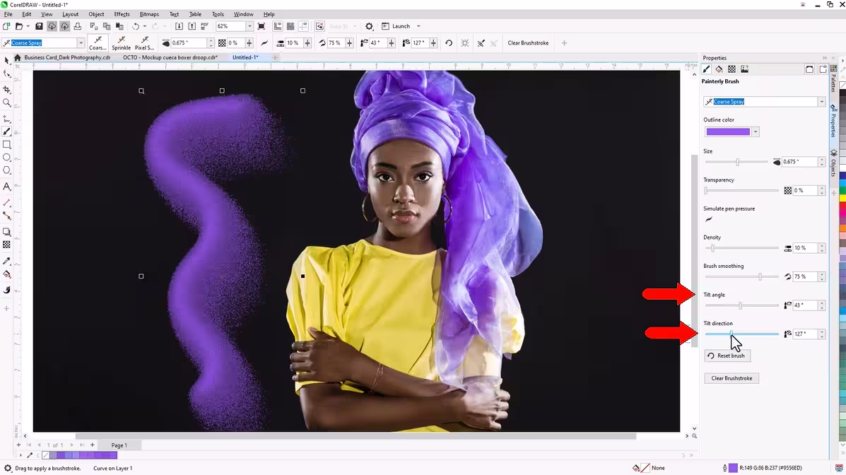 属性栏还控制画笔大小和透明度以及清除笔触按钮,该按钮可删除笔触并将曲线返回到普通矢量对象。