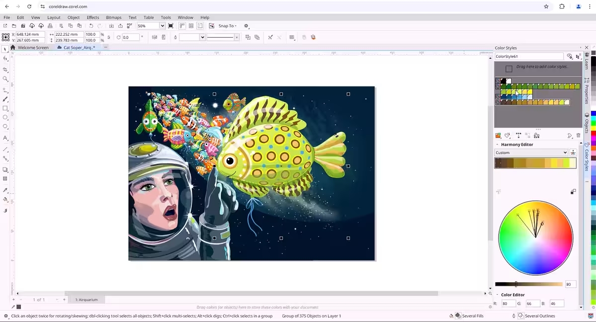 CorelDRAW Web 提供桌面版中的众多矢量图形设计工具,让您能够在线创建和编辑设计。在 CorelDRAW Web 中启动的项目可以在桌面应用程序中无缝打开和编辑,反之亦然。
