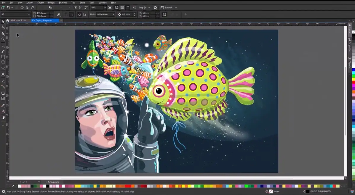 使用 CorelDRAW 强大的矢量插图工具将简单的线条和形状变成复杂的艺术品。借助多种通用形状和绘图工具创建曲线。使用轮廓、封套、渐变和网状填充等效果工具,为您的矢量插图添加创意效果。