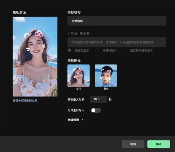 ● 模板名称:特效对外展示的名称,限制6个中文字符以内