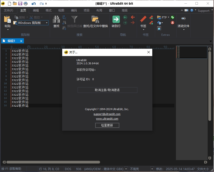 PS:UltraEdit中文破解版,此版本支持中文语言,用户还可使用补丁文件在线激活,以达到无时间限制免费使用软件的所有功能!