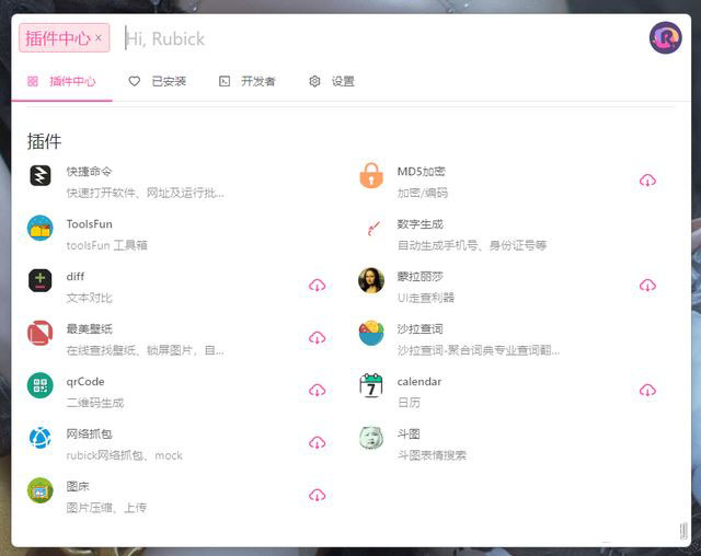 支持系统插件,只要rubick在运行,随时可以使用插件。