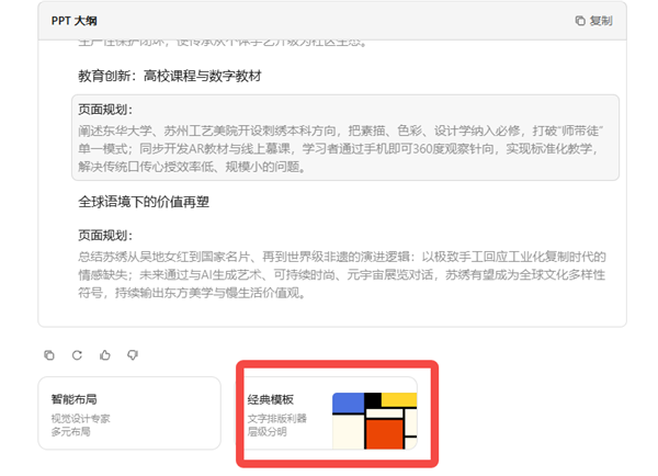3、在输入框中简要描述自己的需求,如【以“苏绣的起源与发展”为主题,生成一份PPT。】。