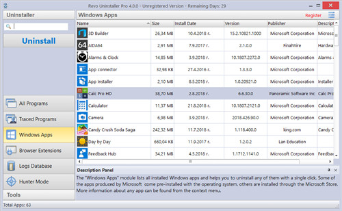 与经典程序不同,除非您拥有Revo Uninstaller Pro,否则删除Windows Apps(内置或从Microsoft Store安装)可能会更加混乱和麻烦,通过为您提供所有已安装应用程序的列表,它可以简化流程,使其更加简单明了,您还可以使用搜索功能进行过滤,从而可以像常规程序一样卸载它们,包括剩余的扫描,您可以卸载Windows上预装的内置应用程序和从Microsoft Store下载的应用程序