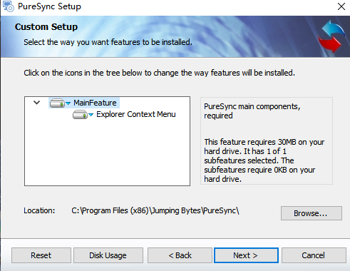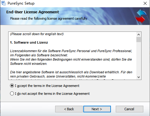 1、解压安装包,双击“PureSyncInst.exe”,等待片刻自动弹出安装界面,直接点击next