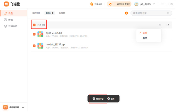 点击云盘内的我的分享,你可看到在文件下方点击取消分享,即可停止分享该文件。(取消分享后,其它用户将无法通过之前的链接下载此文件,请慎重选择)