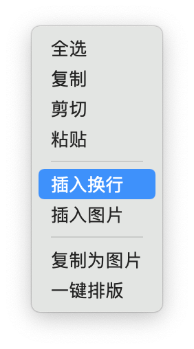 你可以手动输入 <br> 标签,也可以在编辑器的右键菜单中找到此项,如下图所示: