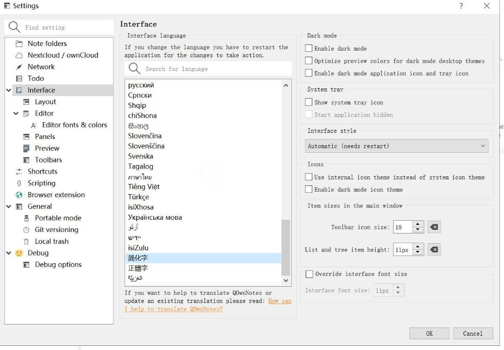 QOwnNotes支持60多种语言,例如英语,德语,法语,波兰语,中文,日语,俄语,葡萄牙语,匈牙利语,荷兰语和西班牙语