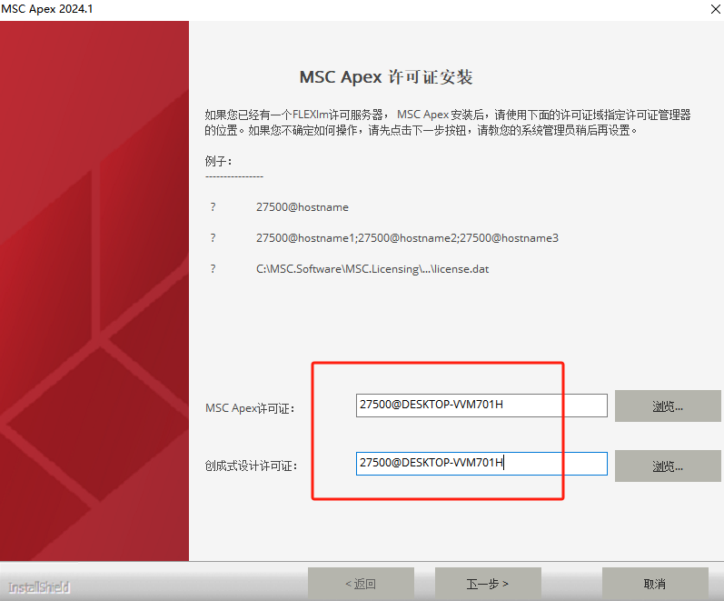 8、继续点击next,出现安装完成界面时,下图这个MSC LICENSE FILE=27500@DESKTOP-VVM701H复制下来,点击finish