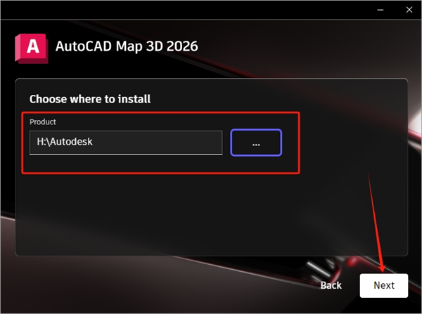 5、更换AutoCAD Map 3D 2026安装位置,点击【Next】。