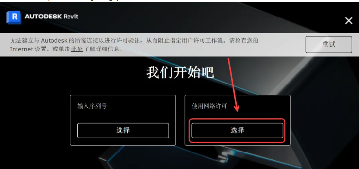 10、打开软件,点击选择使用网络许可,然后进去之后再服务器栏输入:127.0.0.1。