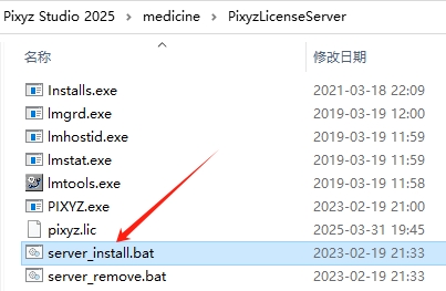 9、点击PixyzLicenseServer文件夹内的install.bat程序。