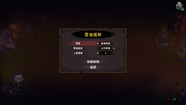 2、选择难度、类型、人数后创建房间;