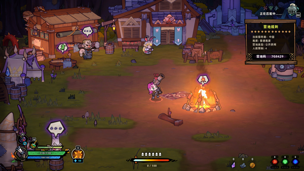 1、打开失落城堡2中文版,进入游戏后来到中间的篝火,按E点击创建房间;