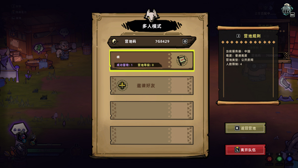 4、最后再次来到篝火旁,按E邀请好友进入营地就可以联机游玩了。