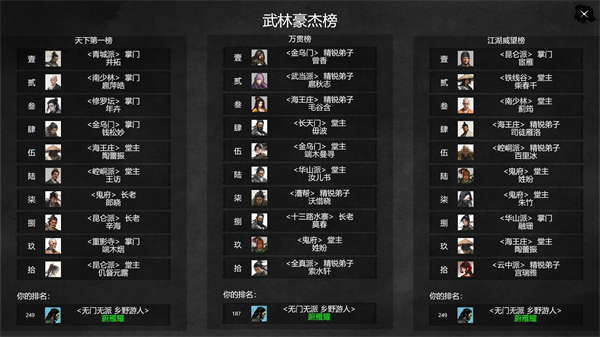 6、武林豪杰榜加油争取排上去可以获得奖励。