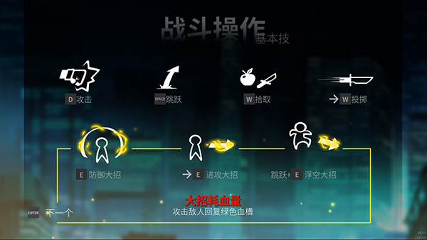 5、在战斗操作界面清晰的告诉了玩家,D键攻击、E键大招等等;
