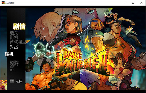 2、成功进入怒之铁拳4电脑版,默认为简体中文,无需语言设置,游戏拥有剧情、选关、接机、对战等模式;
