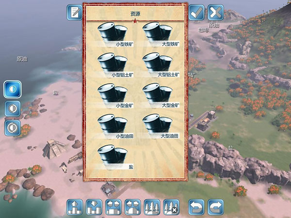 8、界面上方第四个按钮是资源,包括:铁矿、铝土矿、金矿、油田、盐。