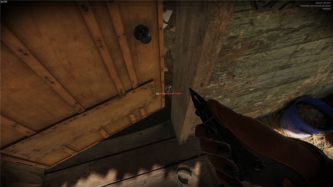 3)小开门,先偏头看房间内情况,不要一开门就看有没有雷(AI很喜欢你),确认没人会从缝隙打你之后,再偏头看绊线,对准绊线,掏出剪线钳(跳不出提示就多找几个角度或者小移动)。