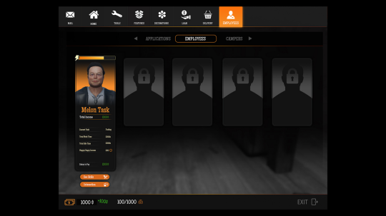每个员工都有自己独特的数值,不是每个人都注定成为一个收银员,或者在车库里修理引擎。如同之前提到的,你可以在潜在雇员的简历中看到他们的技能。此外,一旦你确定了雇佣人员并开始工作,你需要格外小心。工作一天之后大家都会感到疲劳,尤其是你的工作还在沙漠中。设置合理的工作时间,非必要的话就不要设置加班,付给你的雇员合理的薪水,这些都是必不可少的。随着时间的推移,他们的技能会发生变化,因此留意他们的进步,并且在雇员表现达到你的期望的时候,做出正确的决定。