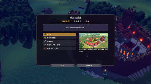 1、玩家解压后,打开文件夹中exe启动器进入游戏界面,点击新游戏即可选择游戏模式,里面有玩法教程以及自由、沙盒玩法;