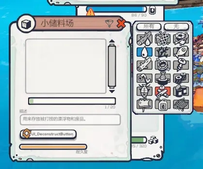 漂流品(Flotsam)是一款3D卡通渲染画风的海上末日生存模拟游戏。游戏的故事背景设定在被洪水淹没的地球,陆地被海水吞噬,只有少数漂流的同伴在恶劣的海洋上幸免遇难,你需要淡水、食物、能源,尽可能地在恶劣条件下生存,这种设定和著名电影《未来水世界》很像。游戏的玩法还是简单明了的,玩家开局会有一个基地和一些初始资源,周围随机分布着数量不等的垃圾堆(资源),通过给漂泊者下达指令可以搜集到塑料、木材等基础材料,之后再循序渐进地从蒸馏器、晾晒架、宿舍发展到船坞、木工棚、废品锻造屋、捕鱼棚等功能性更强的建筑,最终目的当然是能够让整个海上小镇自给自足地运转起来。游戏内的每一种资源建筑人物点一下,都会有独立的配音和音效,镜头拉近之后,格外的真实也是完成了代入感的目标,音效方面可以说是非常的用心了。整体来说,这款游戏还是非常适合喜欢休闲模拟玩家体验的!