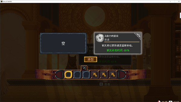 6、将箭袋添加到装备中,装备栏有限,合理利用哦