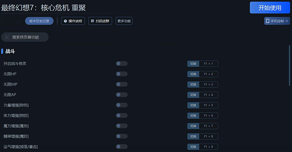 最终幻想7核心危机重聚修改器是一款专为ACT游戏《最终幻想7核心危机重聚》所打造的多功能修改器,通过它可以修改无限HP、无限AP、金钱最大、子弹时间、道具使用不减等多项游戏属性!且修改器简单易用,玩家只需启动游戏、开启修改器即可进行修改。