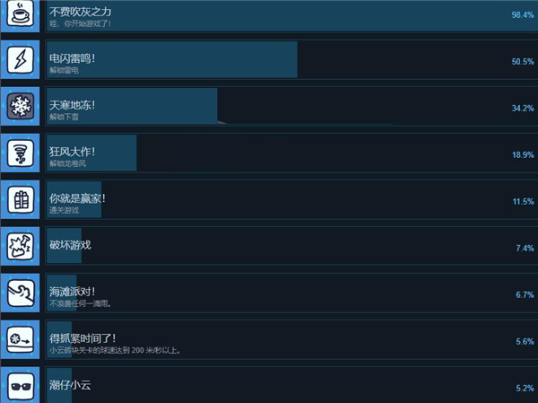 整蛊白云中文版是由Unbound Creations游戏公司制作并发行的一款角色扮演类模拟游戏,在游戏中玩家将扮演一朵喜爱恶作剧的白云,可以在众多不同的地方使用雨雪风雷等多种能力尽情破坏整蛊并完成给出的任务目标,为了让玩家不会产生无聊感,游戏有着多达五十个关卡,而任务目标又分为必须完成的主线目标与可选的支线目标,随着关卡推进后续还会设有让玩家自行去发现的隐藏目标。值得一提的是,游戏内还能够解锁多种新能力,如酸雨、雷电等这些能力可以和环境要素形成新的互动,让玩家乐趣多多。除此之外,游戏当中也内含有解谜要素,如把不同的液体兑到一起形成爆炸,还有吸收油烟将下雨转换为下汽油等,更有全方位的自定义DIY功能,让玩家可对云的脸部自定义画图,制作出喜欢的云去各地纵情大闹,欢乐恶作剧。