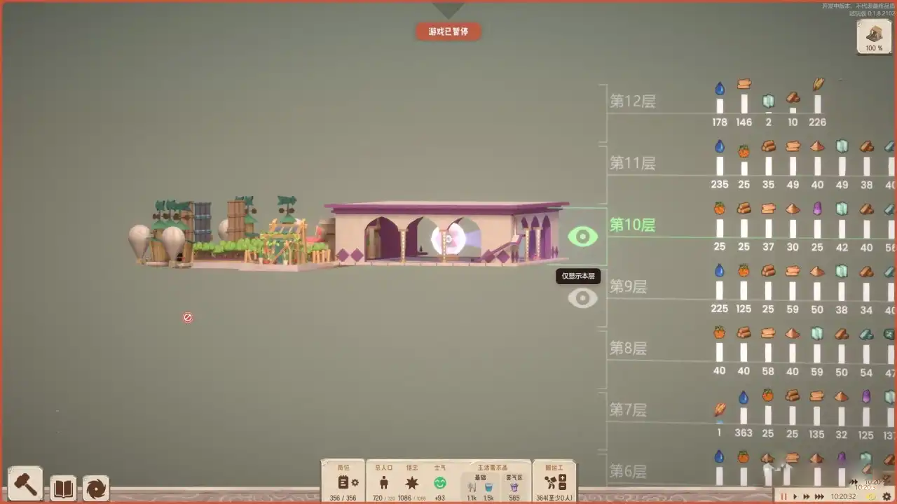 (3)有些时候资源条会显示为红色,这种状态的资源正在被搬运工搬运,不能被管道运输(毕竟管道连接的是塔身不是小人的背后)。