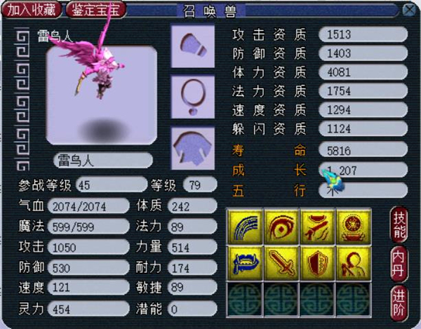 雷鸟人在狮驼岭和丝绸之路随处可见,必带三个技能,也是最早出现的召唤兽之一,因此雷鸟人已经广泛运用于各大等级之中。