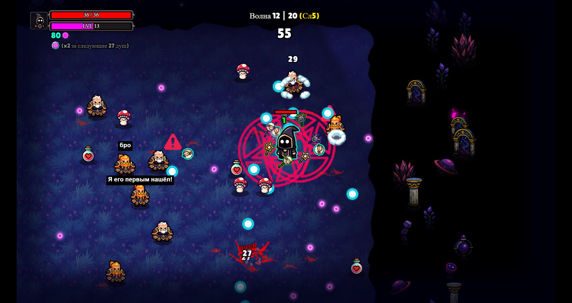 6、升级 & 购买 – 收集菜鸟的灵魂升级,并在波次间购买强力强化。