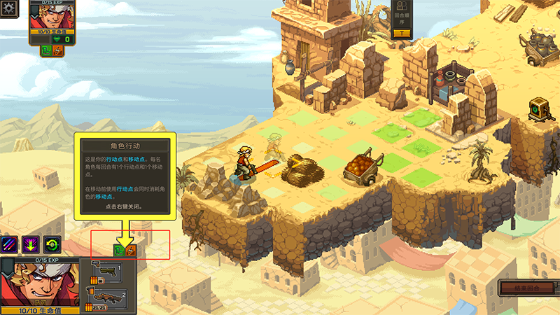 4、这是你的行动点和移动点。每名角色每回合有1个行动点和1个移动点。在移动前使用行动点会同时消耗角色的移动点